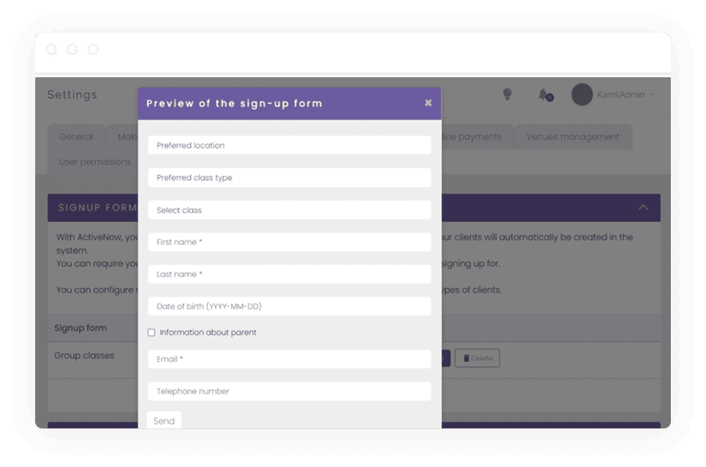 - Automatic reminders to a client about available make-up sessions