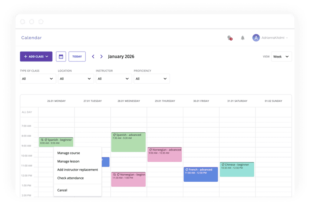 - Self-management of lessons by instructors
