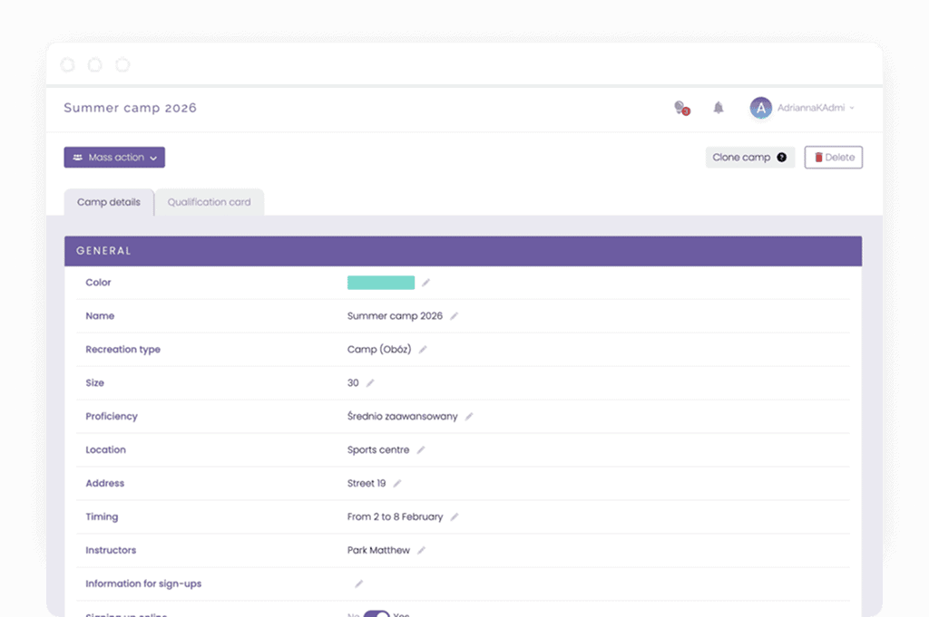 Organise camps, half-camps, tournaments and open days
