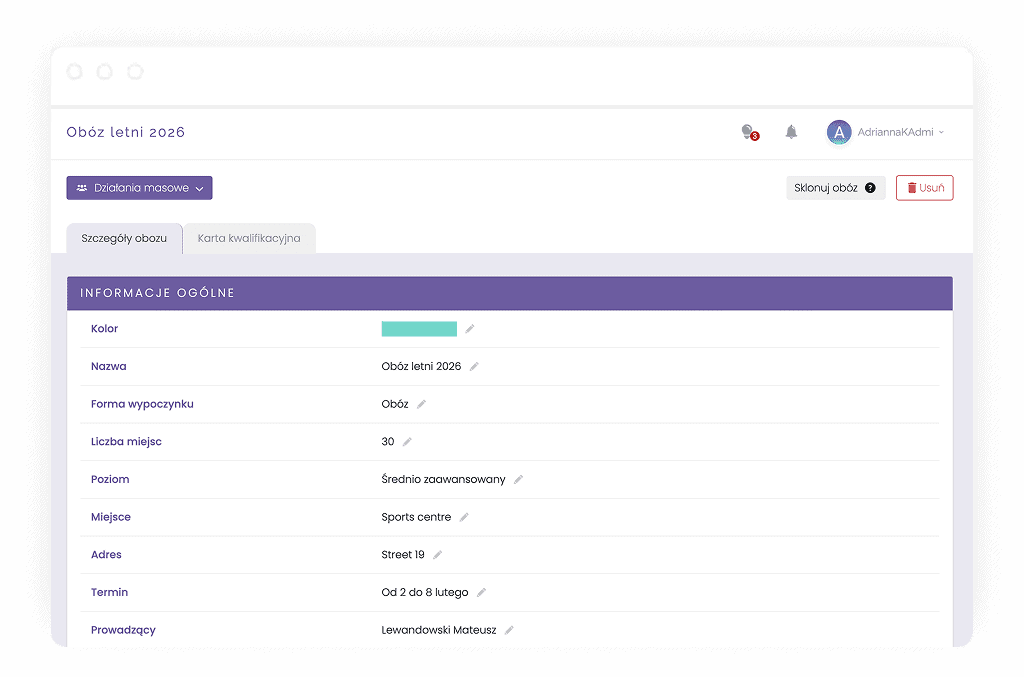 - Masowe wysyłanie wiadomości do uczestników obozów i innych wydarzeń